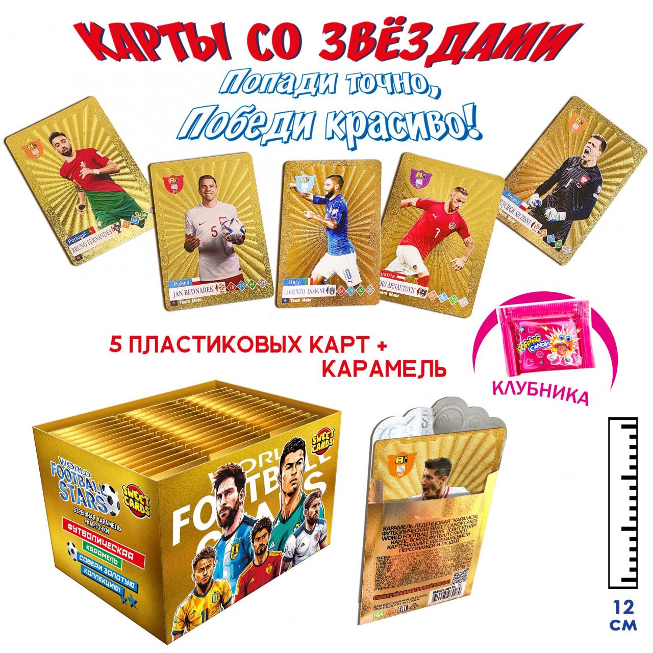 Карамель леденцовая с карточками с изображением персонажей и людей Sweet Candy Cards World football stars (Китай) 1г0,00 руб. за штуку (в упак. 16 шт.) |