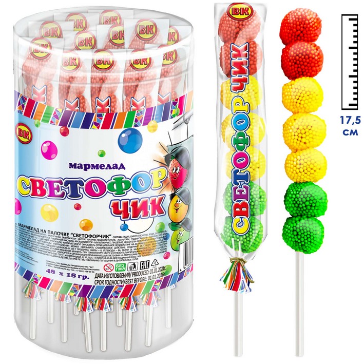 Мармелад на палочке Светофорчик (Китай) 18г9,37 руб. за штуку (в упак. 48 шт.) |